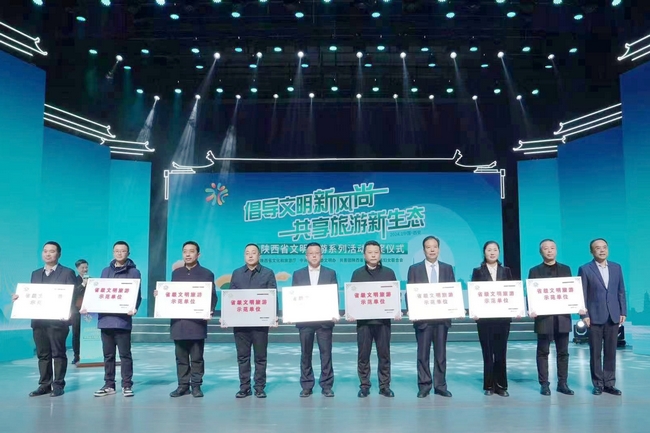 1月16日,由省文化和旅游厅、省委文明办、共青团省委、省妇联联合主办的“倡导文明新风尚 共享旅游新生态”陕西省文明旅游系列活动颁奖仪式,在陕西省文化馆曲江馆区成功举行。省文化和旅游厅党组书记、厅长高阳出席活动,并为2023年度省级文明旅游示范单位颁发奖牌。省文化和旅游厅党组成员、副厅长盛义军,省妇联党组成员、副主席张晓燕,共青团省委二级巡视员王军民为“畅游三秦 礼仪先行”作品征集活动的获奖单位和个人颁奖。