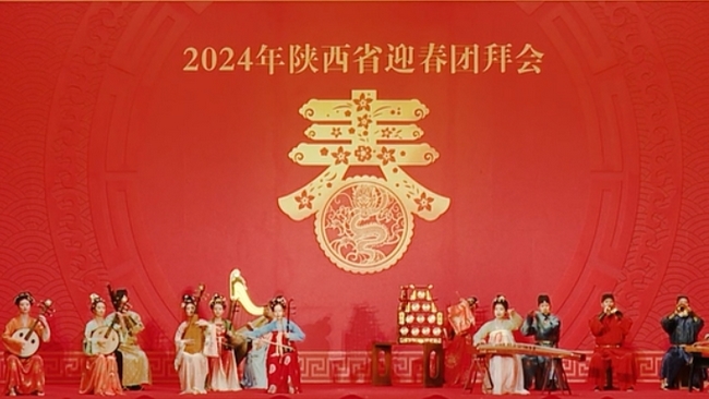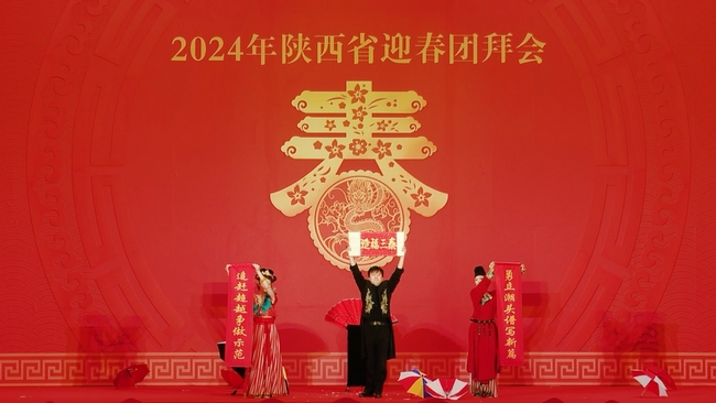 由陕西省文化和旅游厅编排的文艺演出,在开场情景舞《龙行龘龘迎新春》中拉开帷幕。节奏韵律感十足的三弦表演《那道道峁梁那道道川》,激昂婉转的民歌联唱《歌满三秦情满怀》,收获了现场观众的阵阵掌声。源自盛唐名曲的鼓乐表演《破阵乐》,气势雄强,演绎出了大型宫廷乐的盛况。精彩的魔术表演《变》,将现代手法与古典音乐进行融合,展示了陕派魔术的精妙绝伦。戏曲《风华梨园》汇集多位梅花奖得主,以经典唱段大联唱的形式展现三秦戏曲百花园的繁盛景象。歌曲《领航》压轴登场,歌唱家们用动人的歌声,讴歌中国共产党为中国人民谋幸福、为中华民族谋复兴的初心,将整场演出推向了高潮。