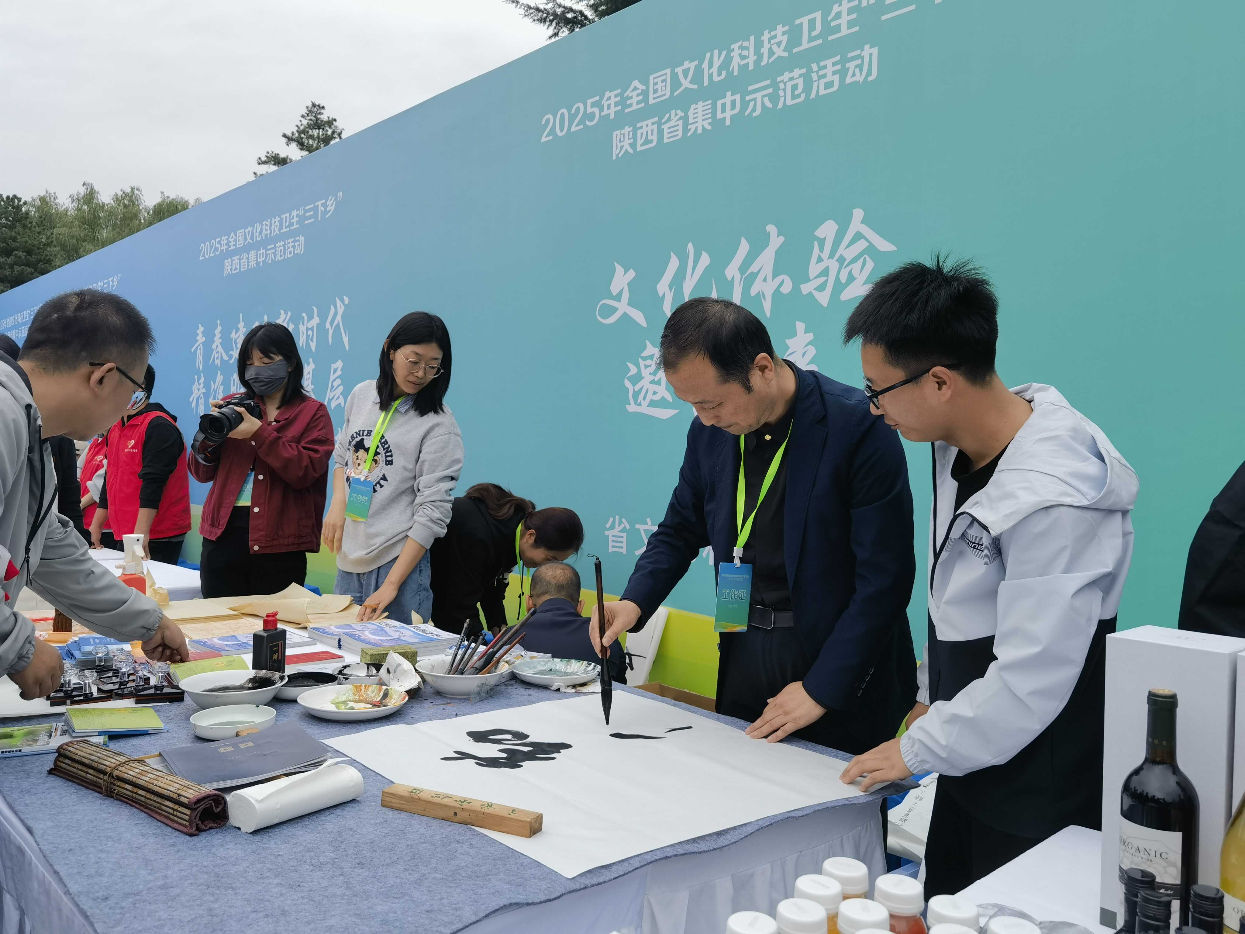 陕西省文化和旅游厅组织厅直属单位在现场精心布置了展位,推动优质公共文化资源直达基层——陕西省图书馆不仅推介文创产品、赠送书刊、免费办理数字资源证,还邀请古籍修复人员携雕版到场,手把手指导群众体验拓印技艺。陕西书学院、陕西省美术博物馆、陕西省文化馆等单位的书画家现场创作,为群众送上书画佳作。