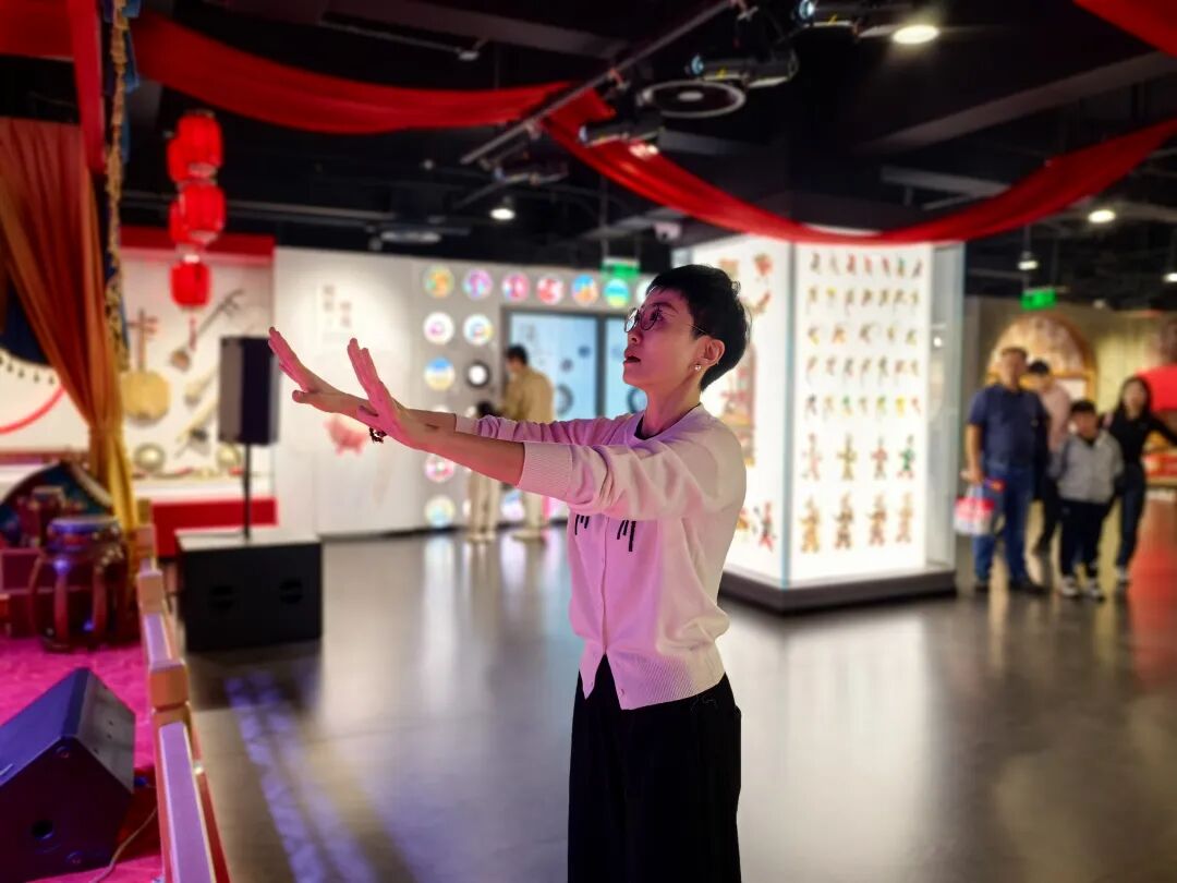 “麦再调高点,下一个节目演员准备候场!”在陕西省文化馆曲江馆区,创作演艺部工作人员吴海燕一边紧张地帮演员调整设备,一边盯着舞台道具,事无巨细地确保每一个环节不出差错。假期期间,这里的非遗小剧场每天下午都会上演两场不同内容的非遗演出,包括陕北民歌、传统戏曲、秦腔等,吸引了大量游客和市民前来观看。