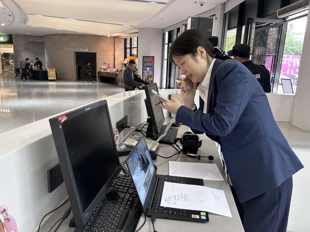 陕西省美术博物馆工作人员吕则萱在接听咨询电话