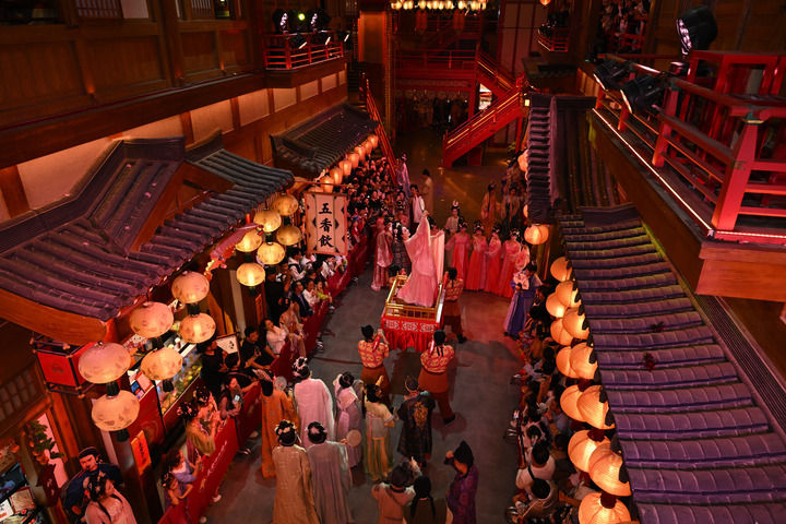 以唐乐宫为代表的舞台剧场,已成为国外游客感知中国的“文化客厅”。西安唐乐宫有限公司总经理王玥介绍,唐乐宫开创的“餐饮+演出”的文旅模式,30多年来已累计演出12000余场,接待全球各地游客1500万人次,今年4月的接待人数创1988年营业以来单月历史新高。