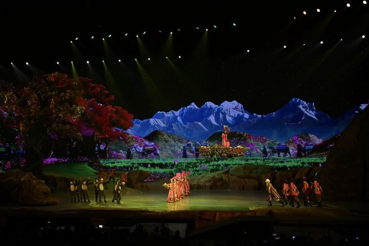 10月3日,驻场演出《驼铃传奇》的演员正在表演。